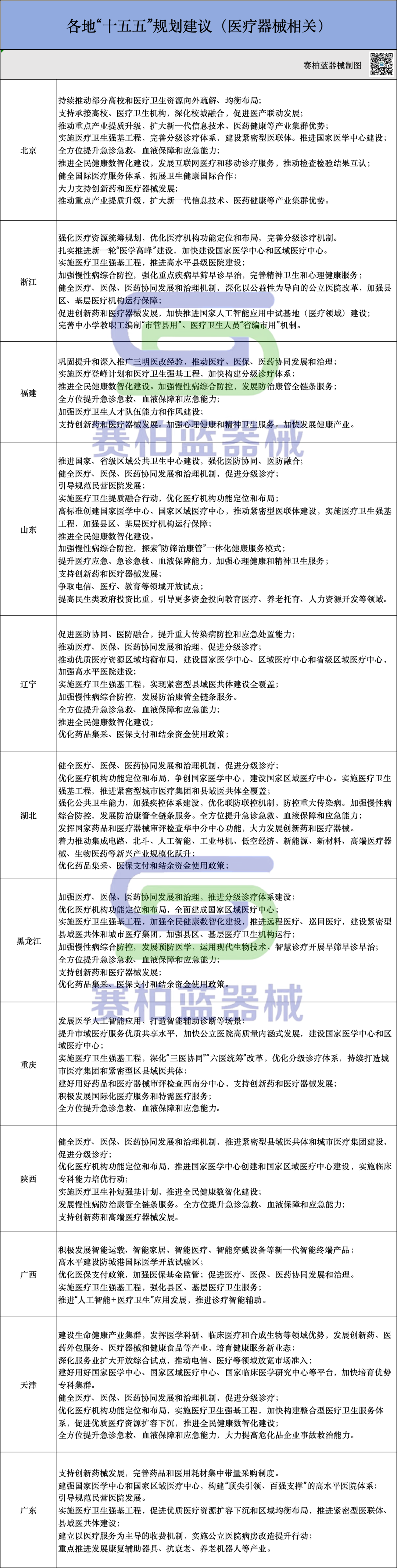 各地“十五五”狡计建议(医疗器械谈论)要点梳理如下: