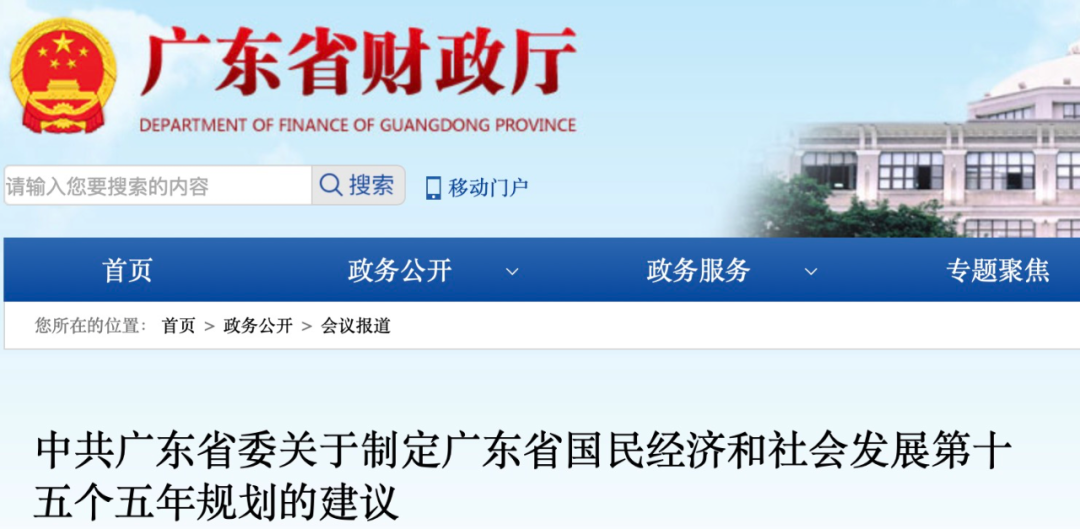 近日,广东省财政厅官网发布《中共广东省委对于制定广东省国民经济和社会发展第十五个五年狡计的建议》(简称《建议》)。